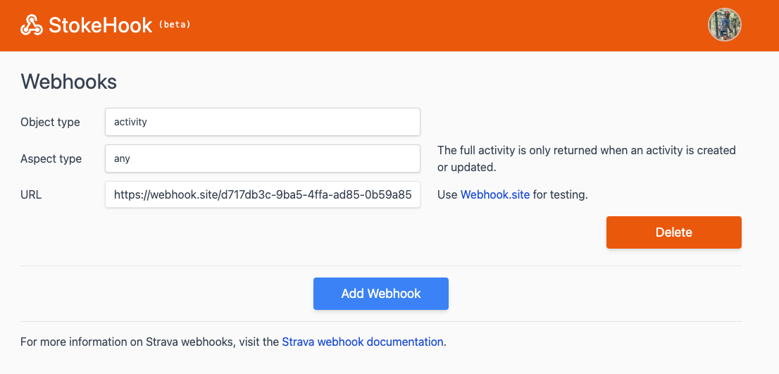 I recently implemented a small application, Stokehook.com, that can send webhooks for your Strava activities to any endpoint. Getting data out of Strava as it is uploaded has never been easy to do and I wanted to fix that in a way that lets other developers integrate the activities into other workflows.